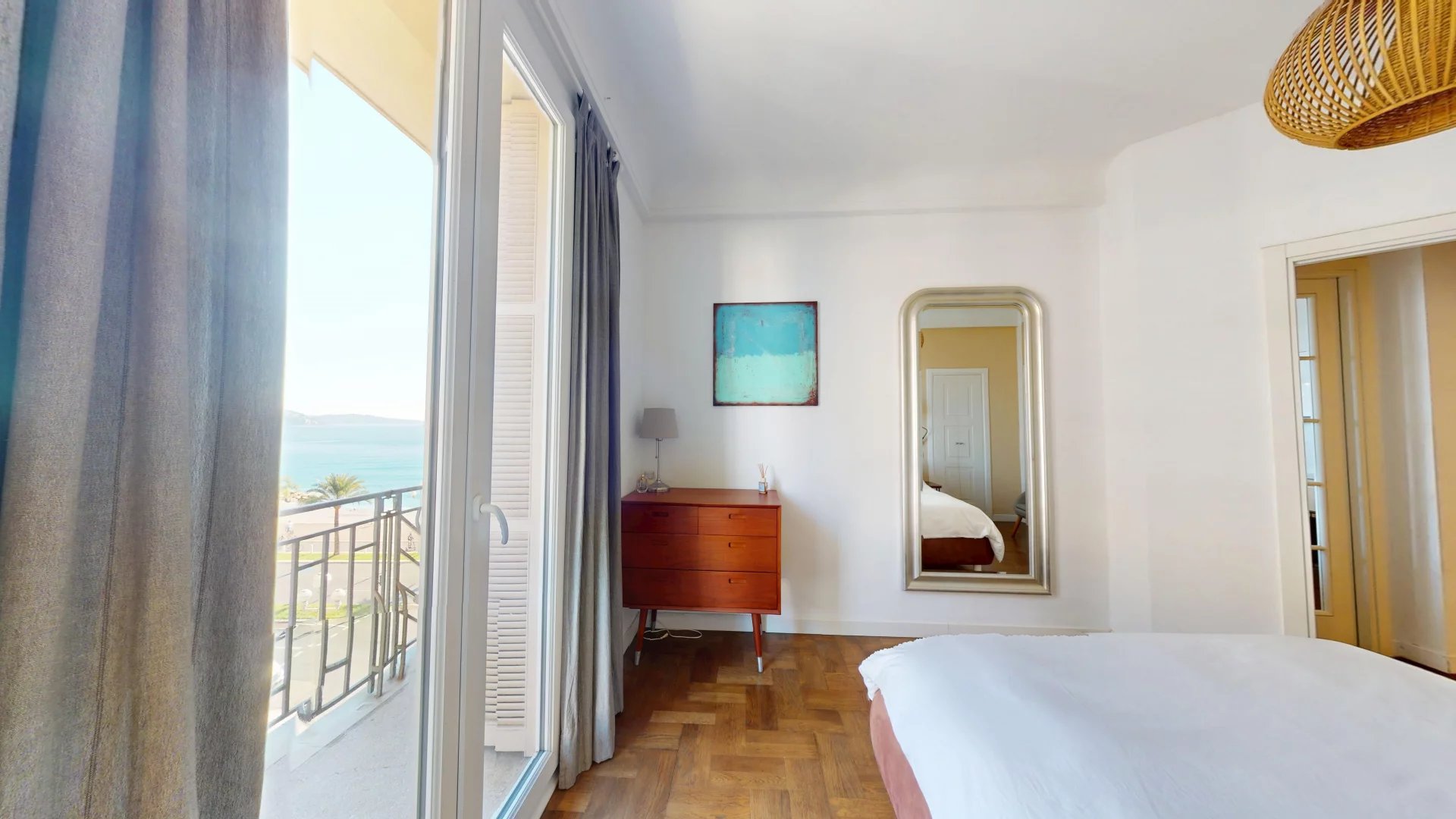 Set on the 4th floor of a beautiful bourgeois building with lift, it features a spacious and bright living room overlooking the Mediterranean, an open-plan kitchen with sea view, two bedrooms, and two bathrooms, one of which is ensuite.